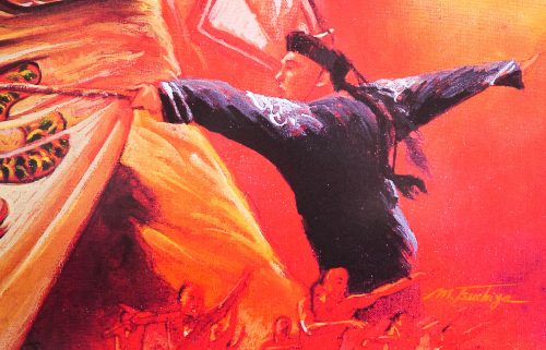 Great artwork by a Japanese artist who has signed the work ‘M. Tsuchiya’ features on this B2 for the release of the 1992 action-adventure sequel, Once Upon a Time in China II. Celebrated producer and director Tsui Hark (who also co-wrote the screenplay) would end up helming all 6 films in the OUATIC franchise that ended in 1997 with ‘Once Upon a Time in China and America’. The legendary martial artist Jet Li appeared once more as the Chinese folk hero Wong Fei-hung and Donnie Yen, another celebrated action star, plays one of the main bad guys in the film.