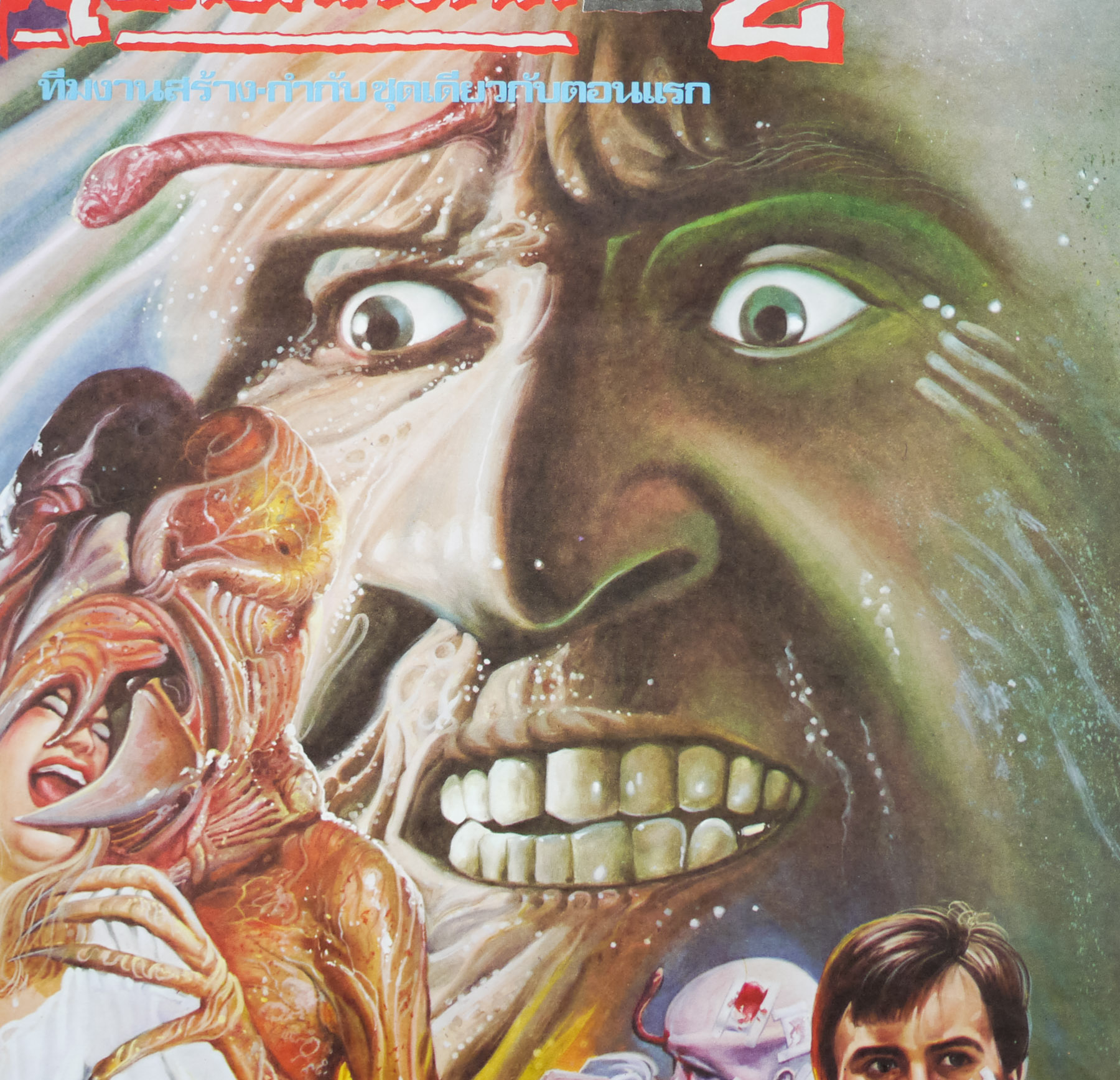 Suitably over-the-top artwork by Jinda features on this Thai poster for From Beyond. Loosely based on the short story of the same name by famed horror author H. P. Lovecraft, the film was director Stuart Gordon’s second following Reanimator (1985). Gordon once again called on the services of two of the stars of that film, with Jeffrey Combs and Barbara Crampton both returning. The film was produced in Italy in order to keep costs down and the director also shot his film Dolls at the same time in the same studio.