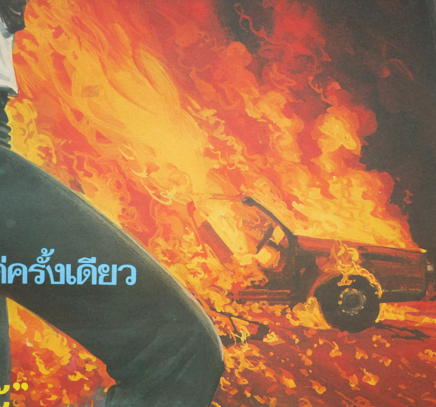 This Thai poster was painted by the artist Tongdee Panumas (he signs his posters with just his first name) whowas an incredibly prolific Thai film poster artist during the 70s, 80s and 90s but I’ve been unable to find out much about him, other than that he was born in 1947. If anyone has any more information please get in touch. A knowledgeable collector of Thai posters told me that the artists would rarely if ever see the film they were creating the poster for and would instead paint images based on still photos or posters from other countries. This led to some wild designs and even some artwork with characters and elements that didn’t even appear in the actual film!