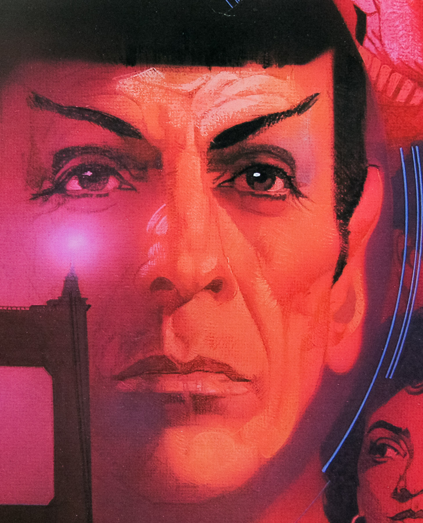 A classic piece of Bob Peak artwork on this poster for the fourth in the original series of Star Trek films, The Voyage Home. For some reason, despite Peak having done the poster for the first film, his artwork wasn’t used for the USA posters of the second and third in the series, but did appear on international posters for The Wrath of Khan and The Search For Spock. The studio then went back to using Peak artwork on the US posters for the fourth and fifth films.