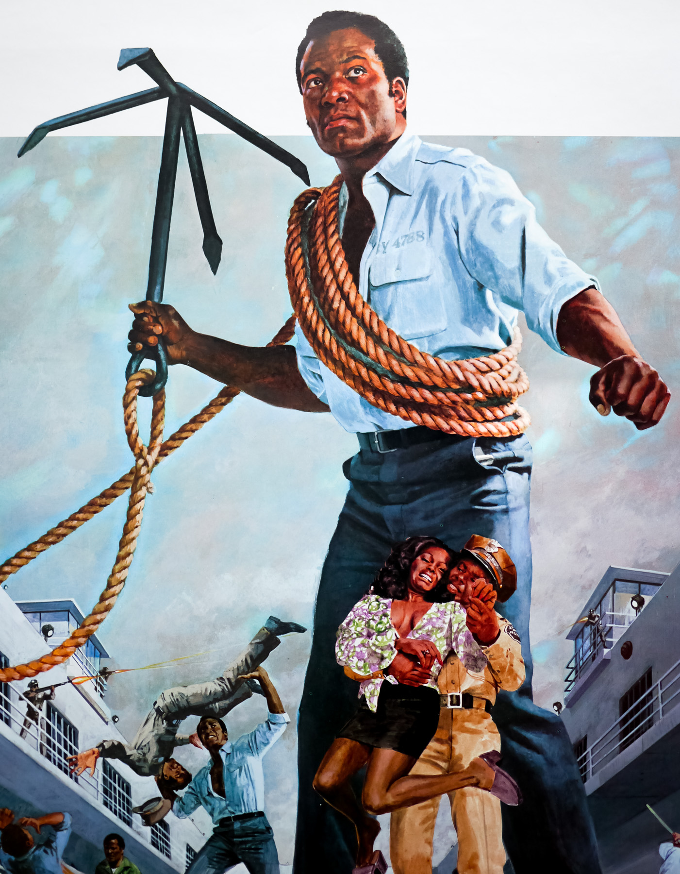 Great art by John Solie features on this over-sized one sheet for the little-seen blaxploitation actioner The Slams, released in 1973. The film was produced by the brother of infamous b-movie legend Roger Corman, Gene Corman, who was behind a few other blaxploitation features like Hit Man and Darktown Strutters. Corman hired Jonathan Kaplan to direct after he’d worked with his sister-in-law on a couple of exploitation features, and genre-regular and ex-NFL player Jim Brown took the lead role.